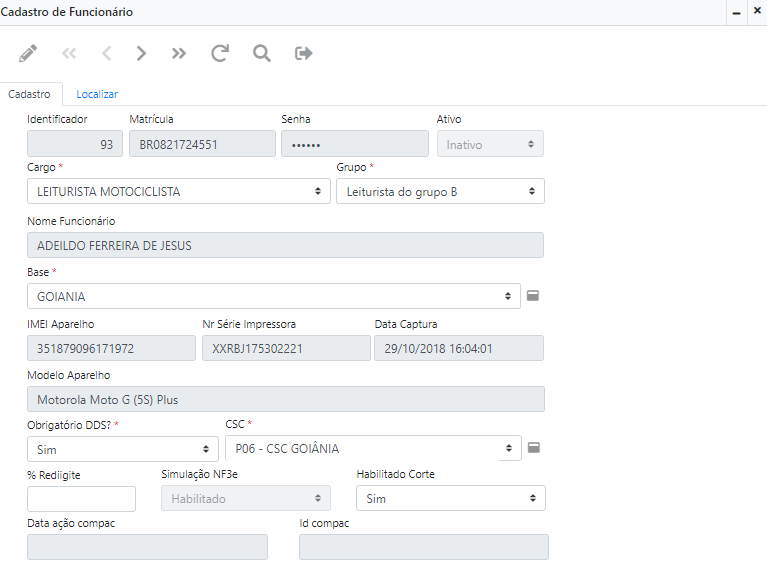 Por padrão, os usuários são cadastrados via COMPAC, sendo possível apenas editá-los. Para isso vá em Cadastros > Cadastro de Funcionários, os campos com * são obrigatórios, abaixo será listado todos os campos editáveis do fomulário.