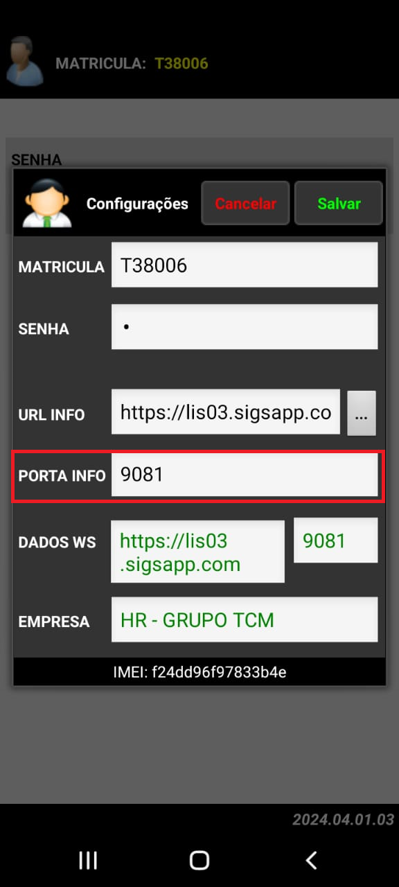 > Em MATRICULA você vai colocar sua matrícula, assim como mostrado na imagem abaixo: