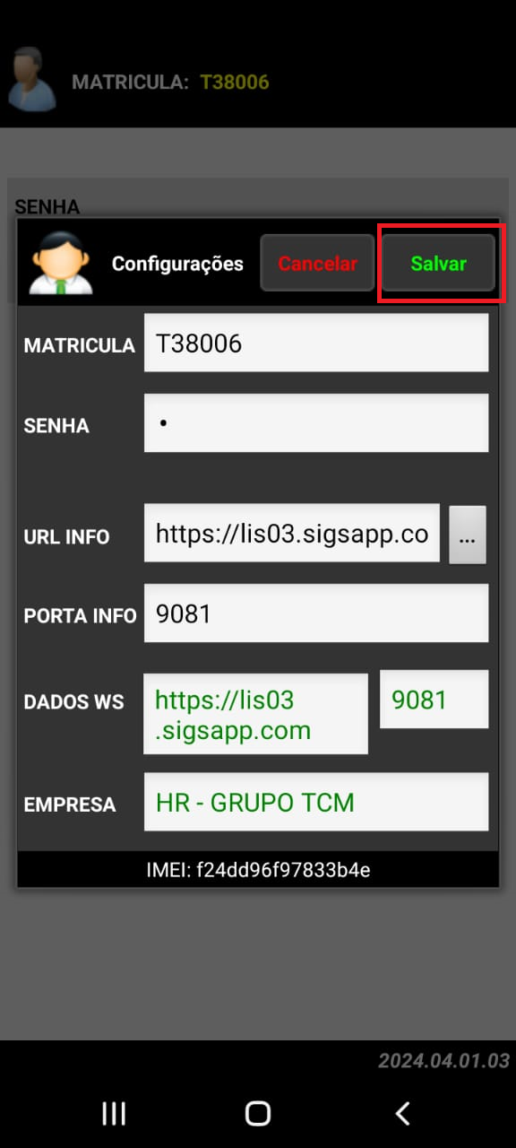 3. Depois de colocar todos os dados acima você vai clicar em SALVAR, assim como mostrado na imagem abaixo: