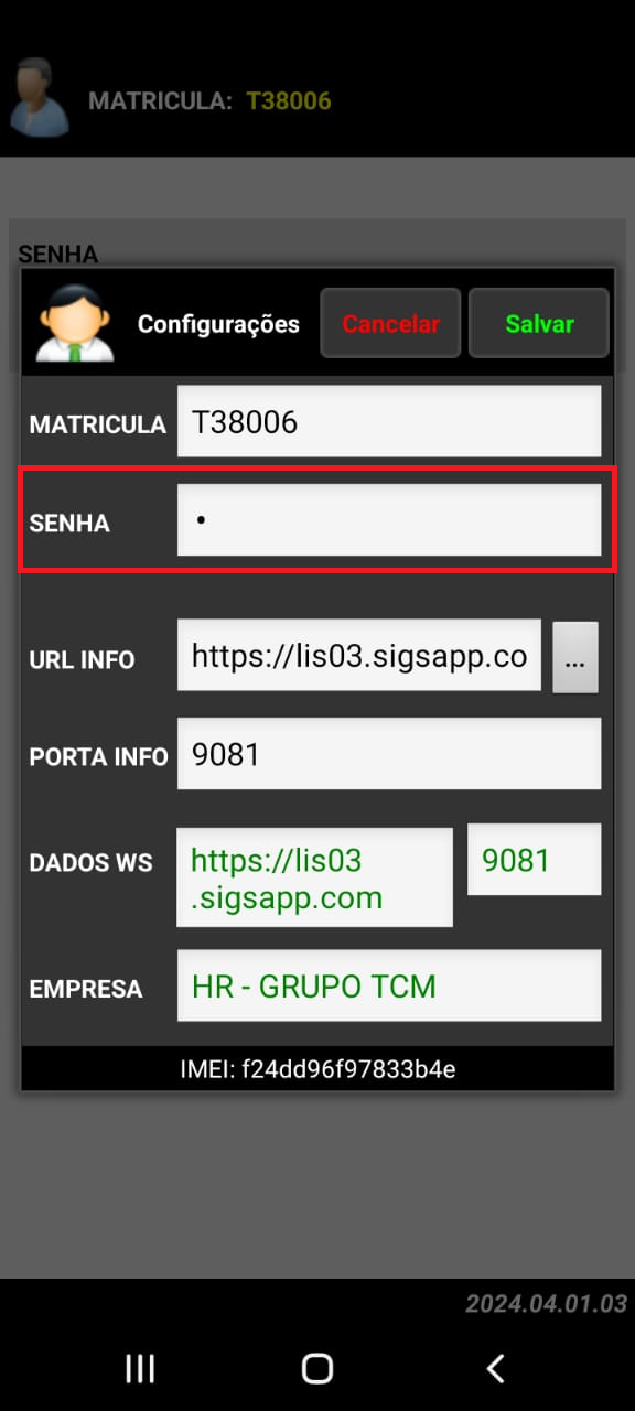 > Em SENHA você vai colocar a sua senha, assim como mostrado na imagem abaixo: