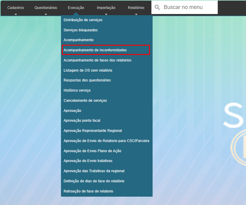 No menu Acompanhamento inconformidade e possivel vizualiar as infconformidades