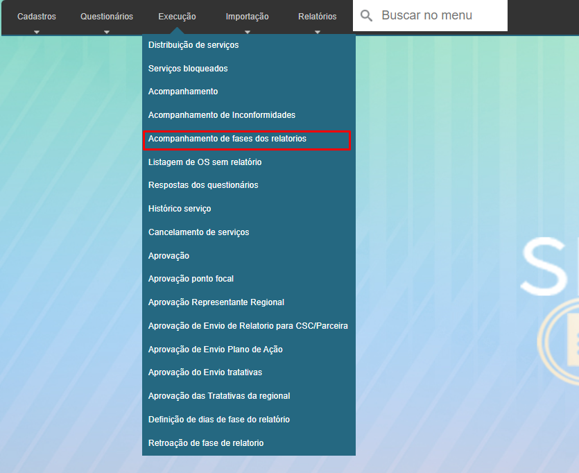 Em Execução> Acompanhamto de fases dos relatório: