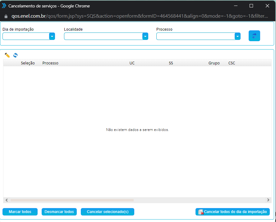 Poderá cancelar os serviço que selecionar ou todos do dia da importação.