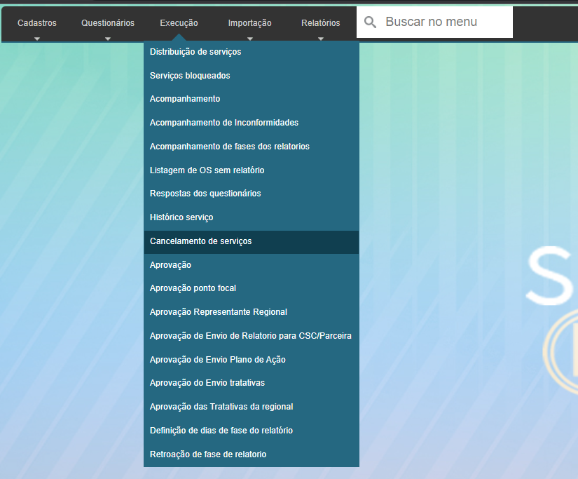 Para acessa o Cancelamento de seriviços, vá em Execução> Cancelamento de seriviços: