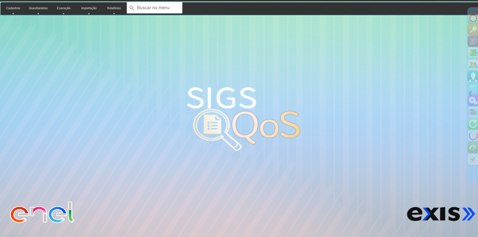 Está será a tela incial do sistema SIGS-QOS, através dela poderá acessar todas as funções oferecidas pelo sistema.