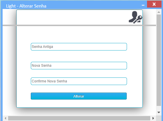Insira sua senha atual, crie a nova senha e confirme, após clique em alterar.