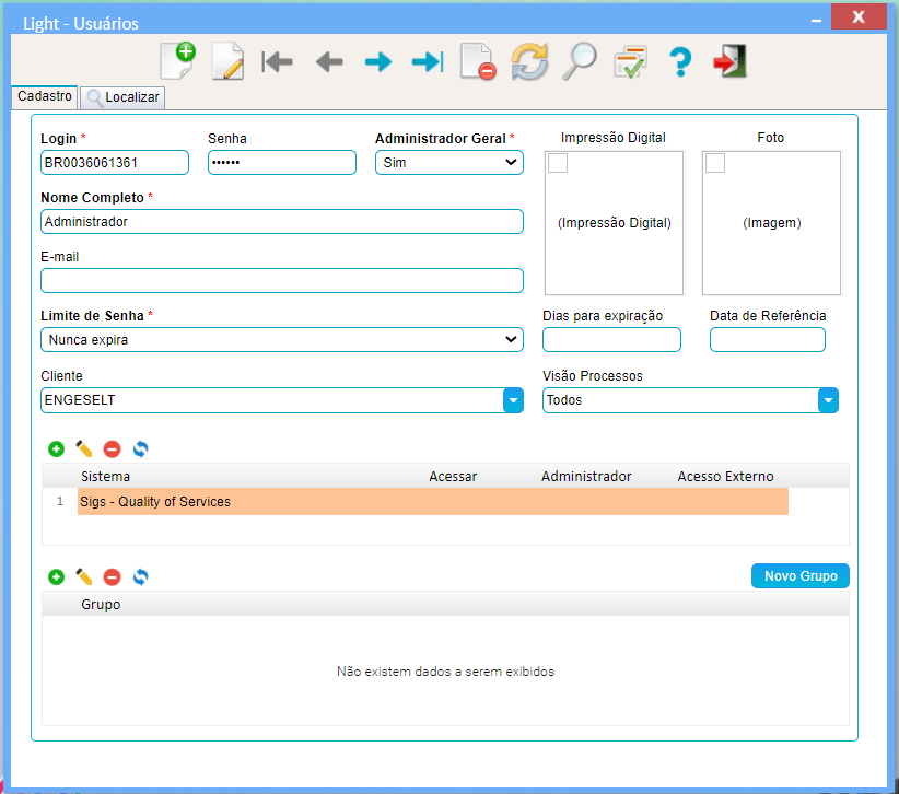 Nesta opção poderar ser feito a criação de alteração nos grupos de usuários do sistema.