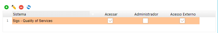 No grid abaixo será definido se o usuário terá acesso ou não ao sistema: