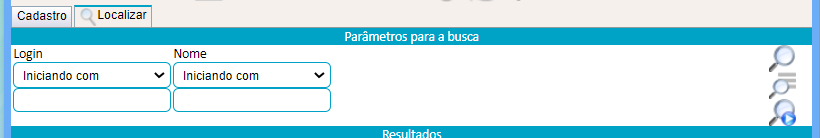 Na Aba "Localizar" podera ser utilizada pra localizar um usuário, podendo ser filtrado por nome ou login.