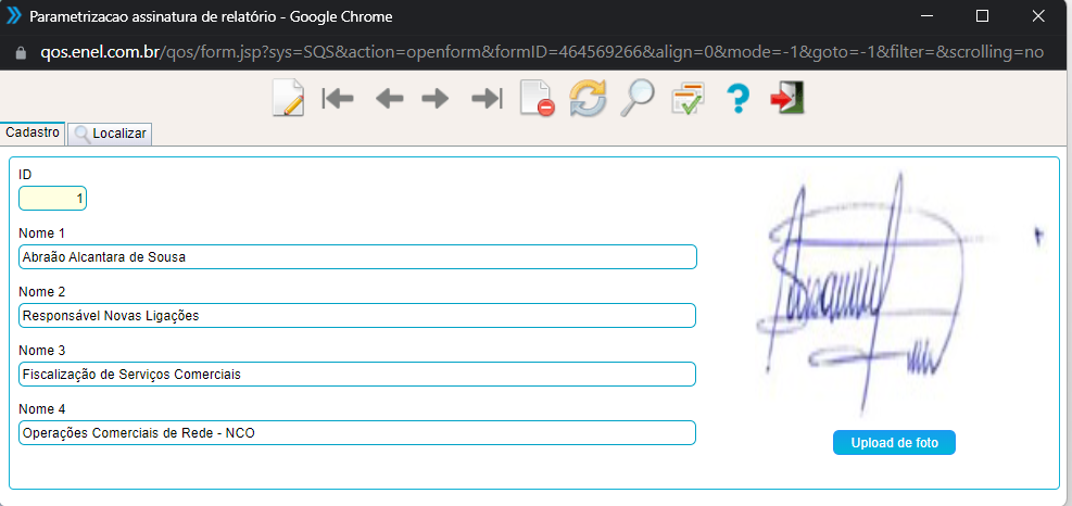 Para alterar um registro já existente utilize o botão de alterar registo localizado na barra de tarefas