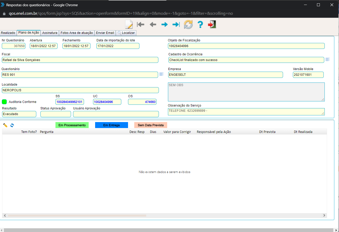 Caso tenha cadastrado um plano de ação aparece aqui após o questionário ter sido respondido: